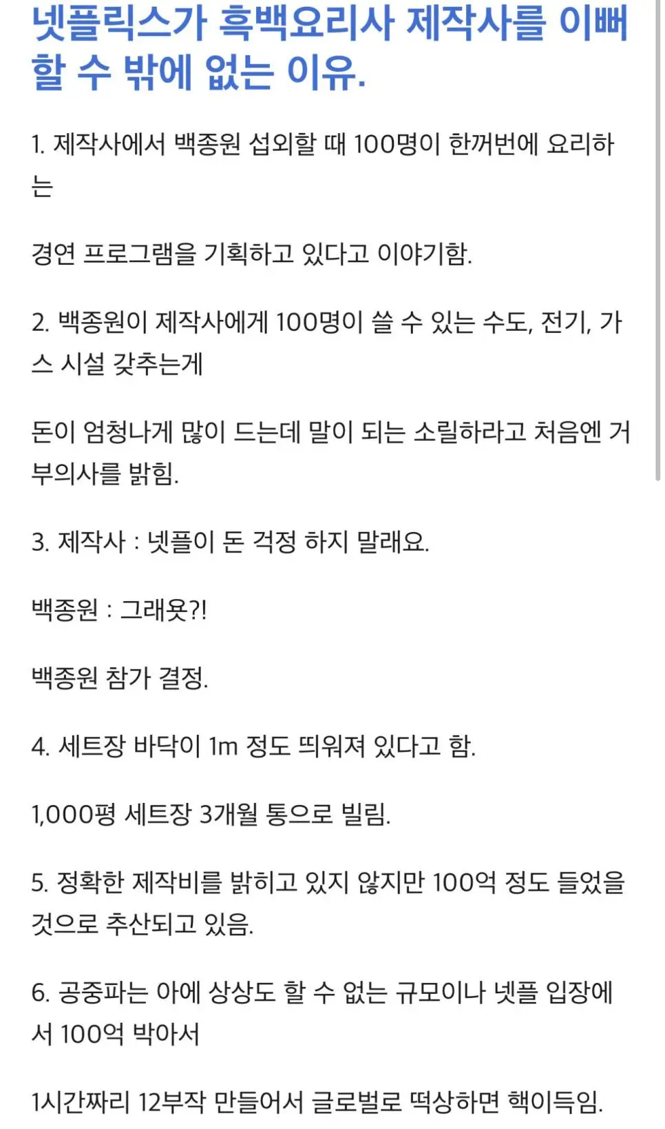 넷플릭스가 흑백요리사를 이뻐 할 수 밖에 없는 이유