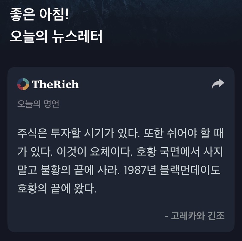 주식은 투자할 시기가 있다. 또한 쉬어야 할 때 가 있다. 이것이 요체이다. 호황 국면에서 사지 말고 불황의 끝에 사라. 1987년 블랙먼데이도 호황의 끝에 왔다.